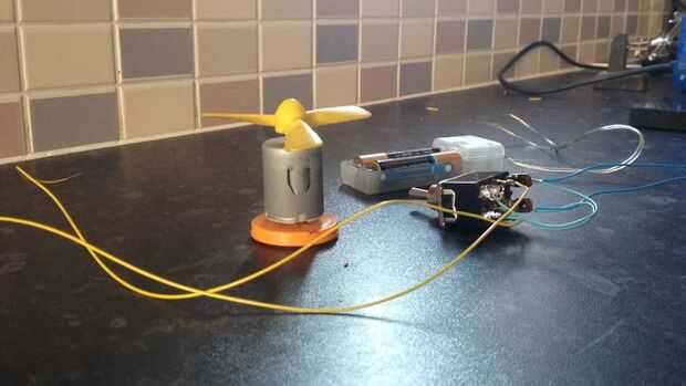 En segundo lugar, conectar los otros dos cables que vienen de las dos medias piernas al motor. Otra vez no importa la polaridad.