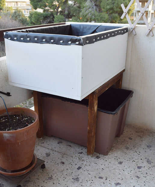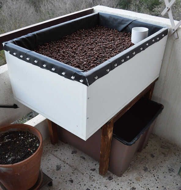el primero que hice fue camino a pequeño así que decidí actualizar mi sistema. Quería prueba dos diferentes métodos de cultivo de plantas así que creado una doble teir crecen cama que permite el flujo de agua hacia abajo a través de dos contenedores.