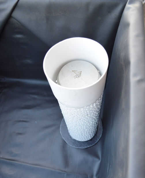 Everything was placed according to plan. Se hizo prueba de agua. Se hicieron ajustes el sistema de trasvase. Cuando todo estaba funcionando correctamente se colocaron los guijarros de arcilla.