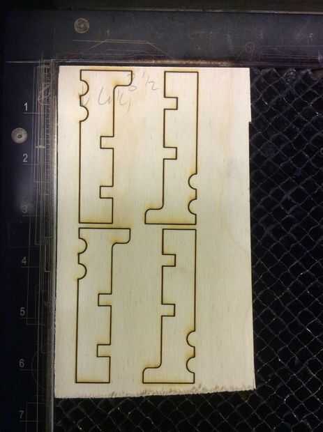 En general este proceso es muy sencillo y depende de tu máquina. Personalmente hice 4 piezas de sección transversal y 2 piezas de soporte. En los archivos de DXF los surcos son 0,23 pulgadas de espesor y los semicírculos de cable tienen un radio de.15 pulgadas. El soporte es muy estable con 2 cortes transversales en cada extremo, sin embargo si usted planea usar una tableta con él o si desea aún más estabilidad, se debe considerar lo que es 3 en cada lado.
