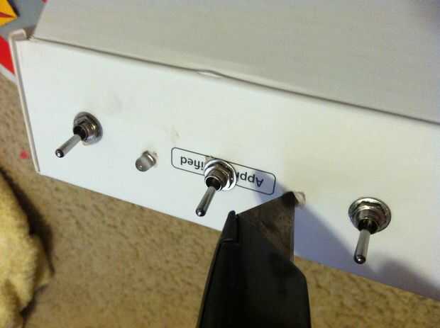 Labrar algunos agujeros en la parte superior de los LEDs pegar, o simplemente se puede dejar dentro de la caja y se ilumina desde el interior, Agregar conmutadores de aspecto fresco y si quieres, conéctelos. Todo cinta hacia abajo para evitar que volar alrededor de cuando usted llevarlo alrededor de...