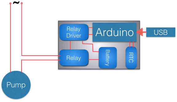 - Conducir la bomba a través de un relé controlado por un arduino con un circuito RTC DS1307.