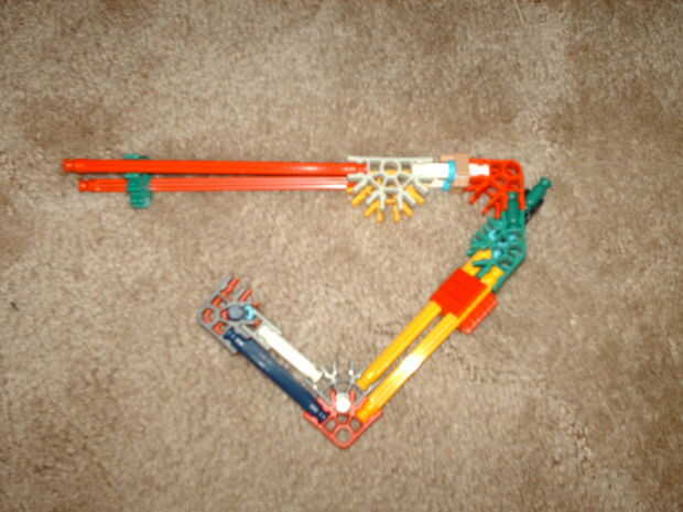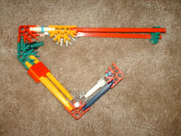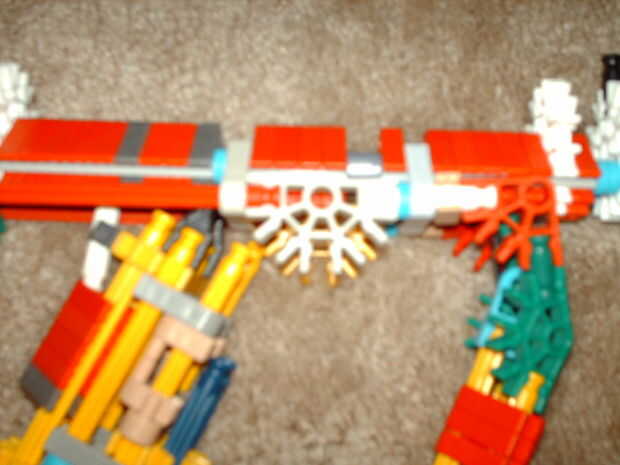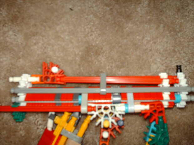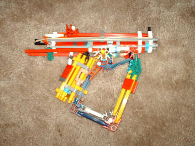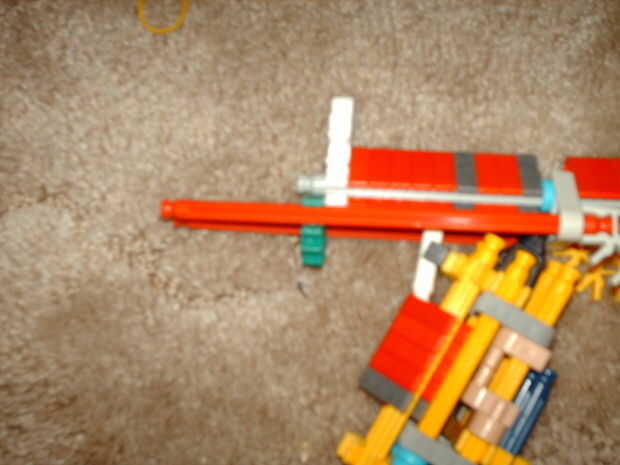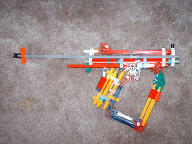 Una simple, ridículamente fuerte y potente arma de K'nex. Gatillo de verdad. Fuego no rápido. Tiempo: 35 minutosLo que usted necesita:conectores de semicírculo amarillo 4421 conectores verdes (no varillas)barras verdes 8250 barras azul26 varillas bla