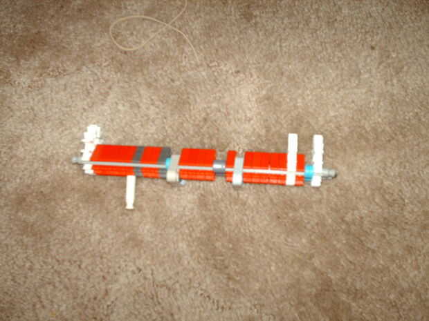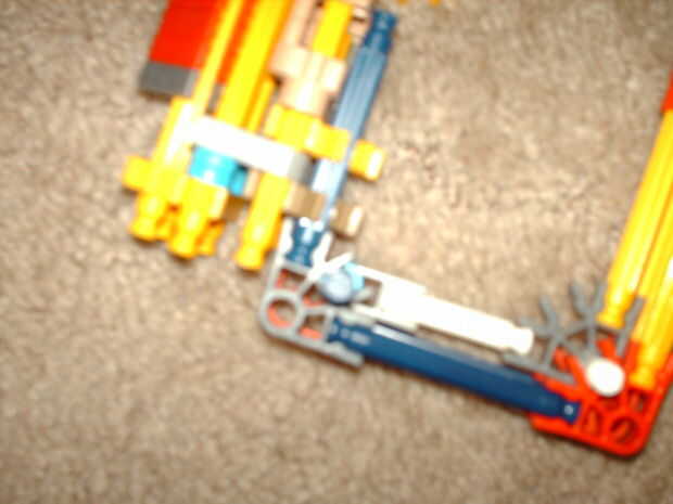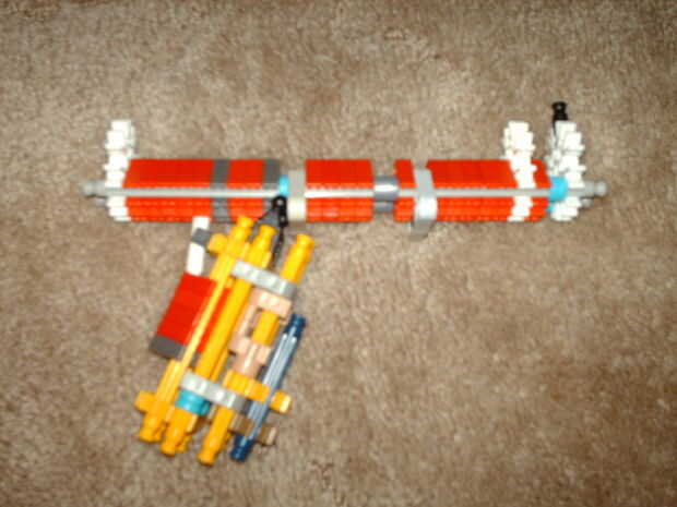 derecha, esta es mi primera arma K'nex: va muy rápidamente y puede tomar un montón de bandas de goma (la máxima que tengo que es de 8 gomas)Sí, ya sé que es un disparador de bloque simple de muy - así que por favor no comentarios diciendo "no un verd