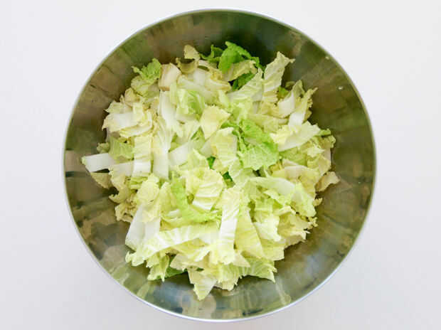• lavar, secar la col de China, luego cortar en trozos de 1 pulgada