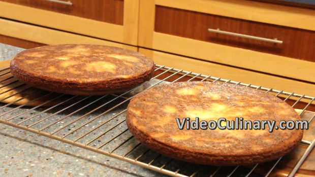 Retirar del horno, enfriar un poco, desmoldar, retirar el pergamino papel y enfriar completamente sobre una rejilla.