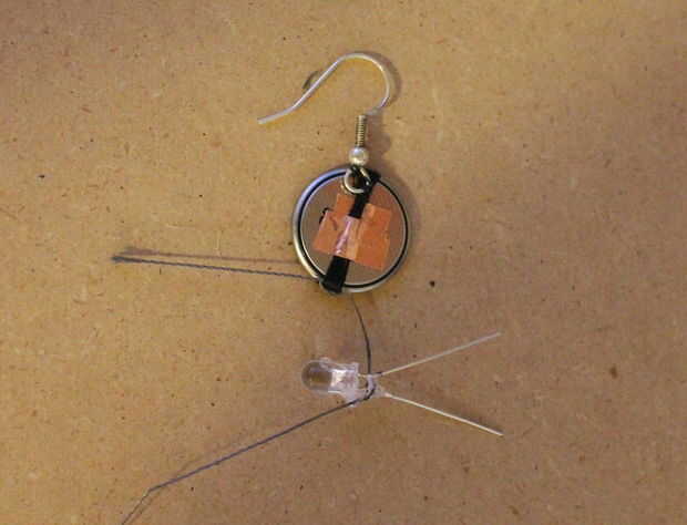 Lazo de 6 pulgadas de hilo conductor a la pata positiva (más) del LED. El hilo conductor a través de la parte inferior de la banda de hilo batería del lazo y tire a través, dejando el LED ~ 1/2 pulgadas (pulg.) debajo de la batería. Baje el hilo conductor, por lo que es sólo tocar la cubierta delantera (lado positivo) de la batería.