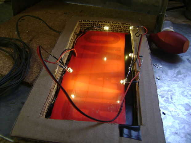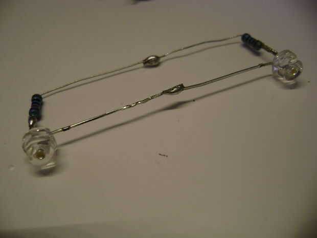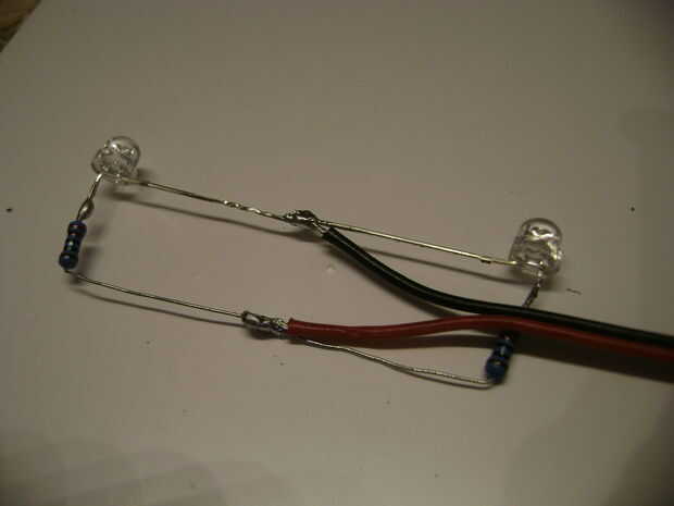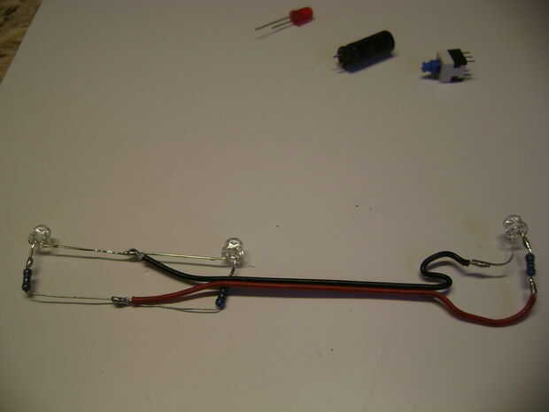 Alambre de todos los LED en paralelo con la longitud adecuada de cable para colocarlos donde quieras, conecte un cable suficientemente largo para alcanzar el interruptor y aislar todas las conexiones con cinta aislante.