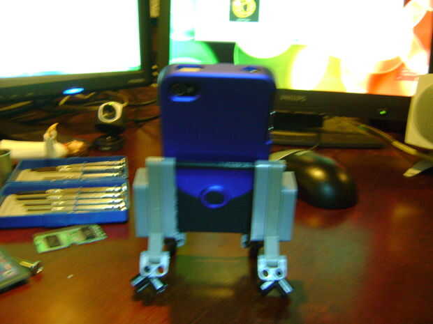 Respaldo Te fue difícil conseguir justo para mí. Porque el iPhone se levanta del suelo para el cable en, se convierte en pesado superior. tienes que compensar esto con el apoyo suficiente. Sólo utiliza un haz de largo con un extremo doblado y atado un pedazo en la parte inferior para hacer cambiar la dirección de los agujeros. Puedes ver esta pieza mejor en el cuadro principal. A continuación, os pongo una pieza de 3 unidades de largo en él y une dos piezas de codo a cada uno. Este nis mejor visto en el cuadro final. Este es el paso más fácilmente personalizable, lo hice porque necesitaba, más probable es que lo puedes hacer mirar "más bonito".