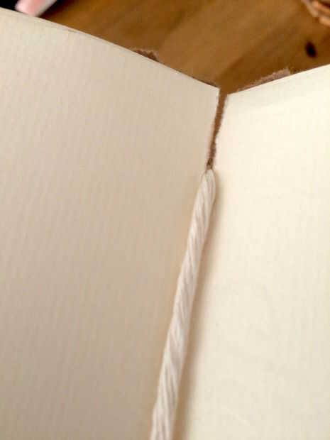 En este paso, he utilizado cuerdas más gruesas que haría normalmente, con el fin de mostrar más claramente el proceso. Debe practicar un poco con este nudo, para asegurar que puede ser aflojado y apretado para adaptarse. El objetivo es que usted puede apretar tirando de los extremos de trabajo de la cadena por lo que se ajusta perfectamente, permitiendo todavía el lazo aflojar lo suficiente como para liberar las páginas. (El lazo 'afloja' deslizando los dos nudos de pescador de uno hacia el otro, aprieta otra vez deslizando aparte. Te llevará un poco de ensayo y error para obtener los nudos atados de una manera que hace que el bucle de tamaño adecuado para snugness cerrada y la capacidad de eliminar páginas cuando está abierto).