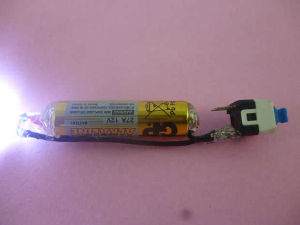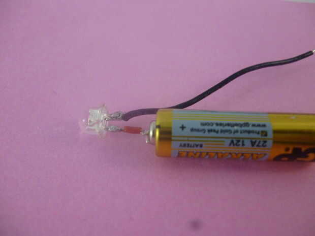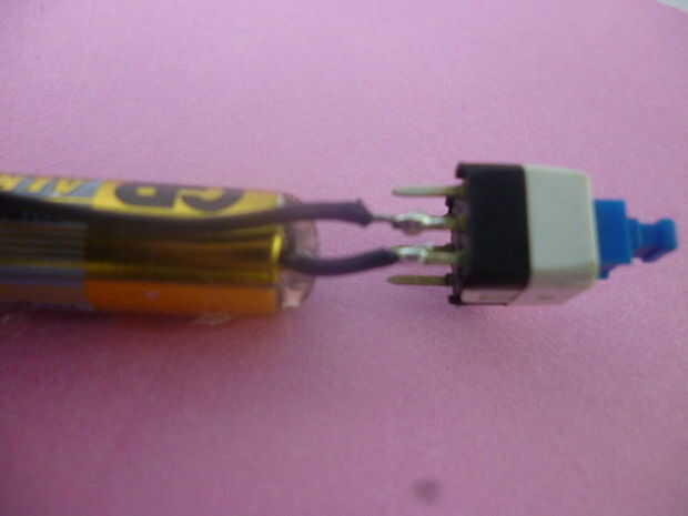 y también soldar un pequeño trozo de alambre del interruptor al otro extremo de la batería.