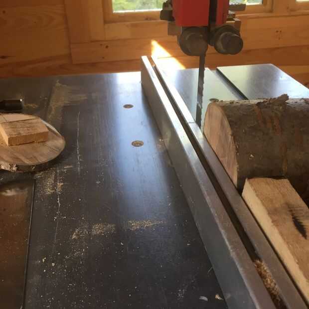 También puede utilizar una sierra de cinta. Enfoque muy similar a la tabla vio, pero asegúrese de utilizar un empuje palillo para entrar en la rama de la hoja más una visita a la A & E podría estar en las tarjetas.