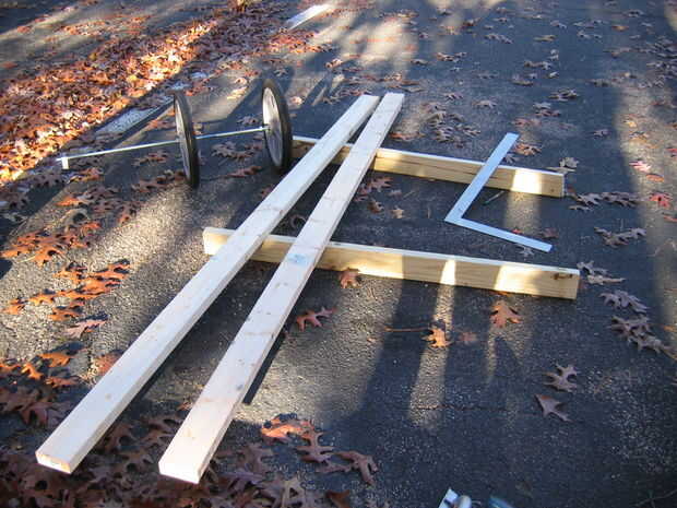 Dos ruedas de 16 pulgadas, con rodamientos y eje orificios de 1/2"(disponible aquí y en varias ferreterías.