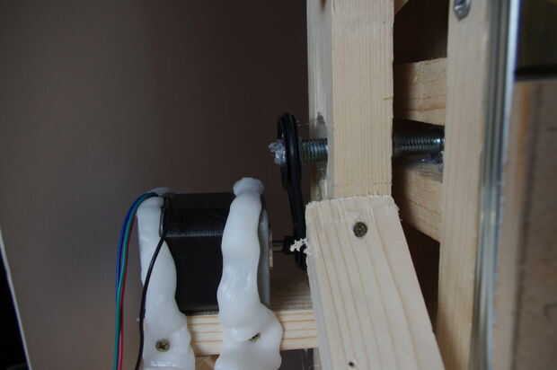 Las poleas deben poner a los motores y las varillas roscadas y luego necesitan pegado en lugar.