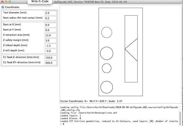 Ahora que su sido exportado necesita girar código de g, esto puede ser hecho usando un programa llamado "dxf2gcode"