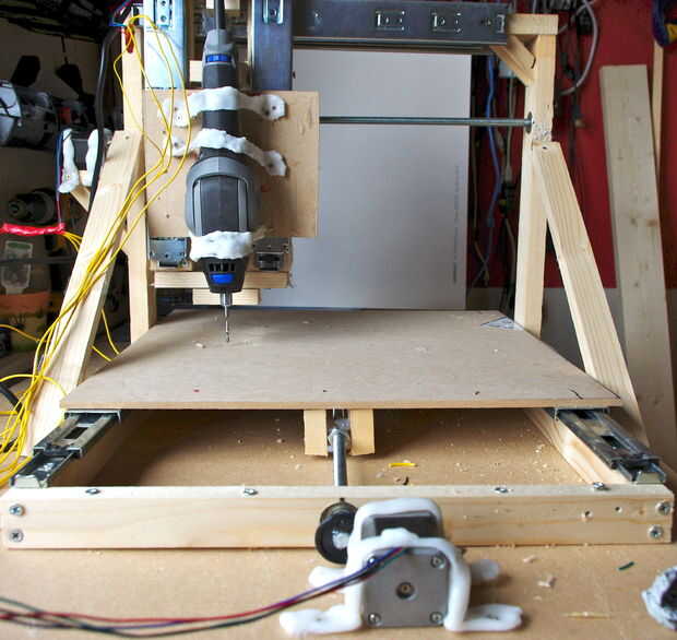El año pasado estaba desnudándose de una vieja A3 HP tamaño 2500C inyectar impresora para piezas. Una vez que llegué al chasis base, me di cuenta de lo era lo suficientemente fuerte como para formar la base de una máquina CNC.5 días más tarde, tuve l