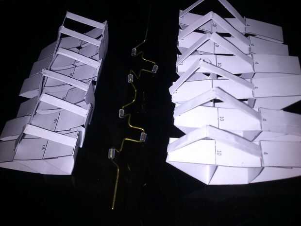 El CAM cuenta con 6 secciones, cada una sucesiva en el desplazamiento de 120 grados a la siguiente. Por lo tanto tienen tres pares alineados de secciones. Esto permite para tener al menos dos pares de patas de apoyo y mover el mecanismo sincronizado todo el tiempo, convirtiéndola en estables.