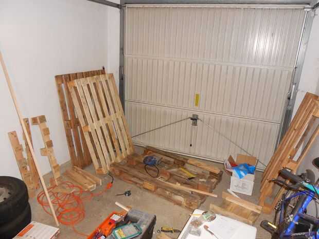 Haz algunas paletas agradables. Usted puede encontrar en la calle gratis. Para una mesita de noche usé 1 palet y la otra mitad. Así que usted puede construir dos mesitas de noche con las tres plataformas.