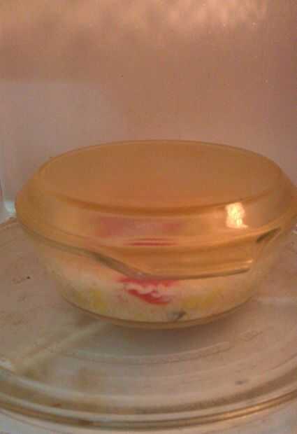 Cubrir el recipiente con la tapa y el microondas durante unos 15 minutos.