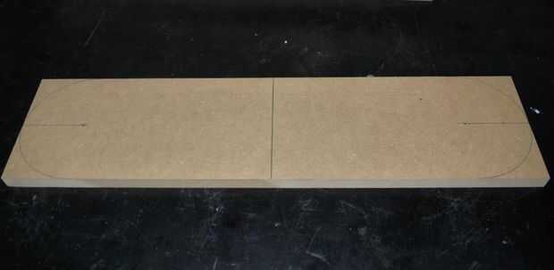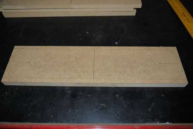 Trazar una línea en el centro de cada pieza desde el lado largo al lado opuesto de largo.