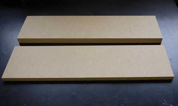 Comience con dos pedazos de 10 cm por 40 cm. y una pieza de 8 cm por 1 cm