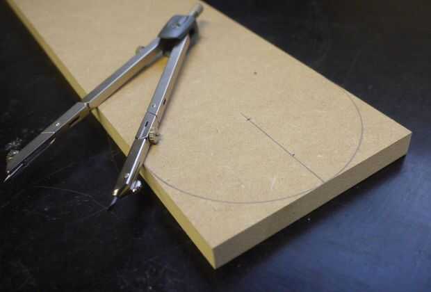Toma un compás y dibuja un medio círculo (10 cm de diámetro) en cada marca.