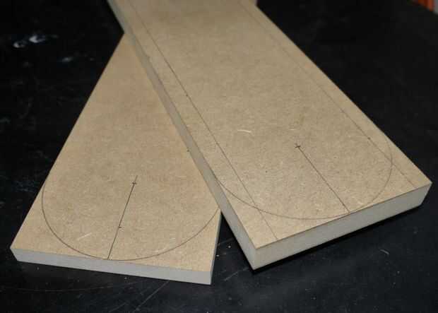 Tomar lo dos de 10 cm por 40 cm piezas y haga una marca de cada extremo recto en el centro a 5 cm.
