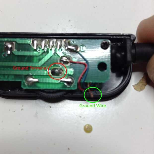 A la derecha de la placa de circuito debe haber tres cables subiendo y la conexión a la placa. Vas a tener que buscar el cable de tierra dorada, un círculo verde, y ya sea desoldar de la placa, mi elección personal, o simplemente cortarlo. De cualquier manera, probablemente vas a querer cortar el cable de tierra corto luego para evitar interferir con cualquier otra cosa. La razón por la que estamos haciendo esto es porque esto significa que después de que el sonido pasa a través de los auriculares, trata de tierra sí mismo, pero ya no hay nada que ir cuelga y se mete con el audio. No sólo esto crea un ligero eco, también termina por silenciar algunos sonidos en cualquier música, a menudo dejando solamente las armonías en una canción. No estoy totalmente seguro de cómo funciona, pero me alegro de que lo hace porque hace algunas canciones suenan bastante interesantes. Experimentar con él y encontrar qué canciones suenan las mejores (si quieres un ejemplo rápido, escuche las galaxias o Fireflies de Owl City).