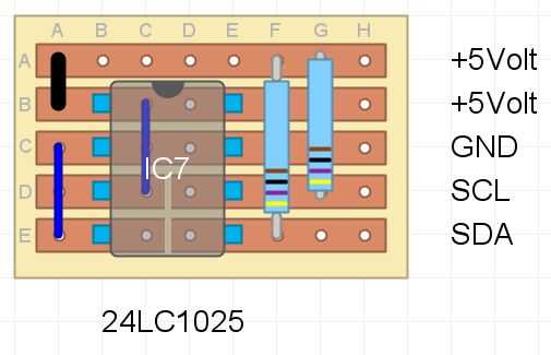 Esta tabla puede utilizarse también para EEPROMS más grande, pero... Si lo usas para el 24LC1025, deberás hacer una pequeña adaptación. A2 debe vincularse con este chip a Vcc para funcione.