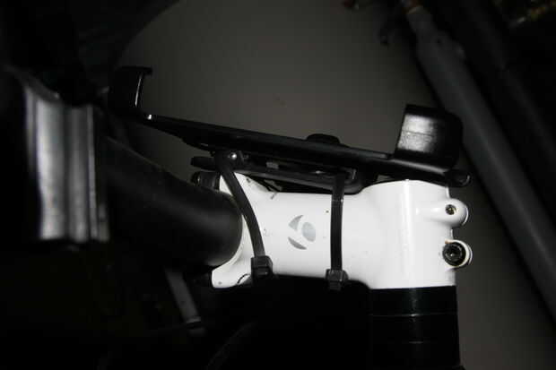 Funda The Otterbox® se monta fácilmente en el tallo de una bicicleta de montaña. Simplemente corrí una amarra por la parte anterior del clip y alrededor del tallo del manillar y otro a través de la parte inferior del clip y alrededor del tallo (ver fotos). Cuando yo les aprieta hacia abajo, incluso no sonajero. Había cortado los extremos de los lazos del cierre relámpago con alicates diagonales. He utilizado este montaje un par de años. Nunca ha fallado. He quitado una vez para montar un soporte de manillar en la bicicleta para un paseo particular y después a instalar sin problemas. Es fácil de cortar los lazos del cierre relámpago y ponga más adelante en otros nuevos. Una desventaja es que, cuando algún día actualizar a un nuevo teléfono, probablemente tendré que conseguir una nueva serie de fundas. Este factor puede ser una razón por la que sigo posponiendo ese día!