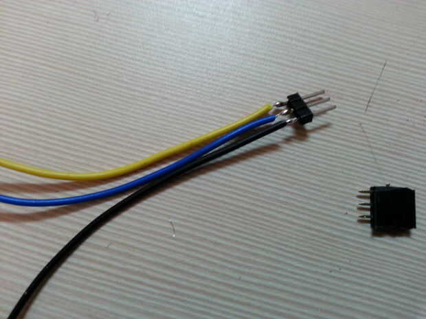 Conexión sensor de movimiento debe ser flexible asi que hice un conector de 3 pines