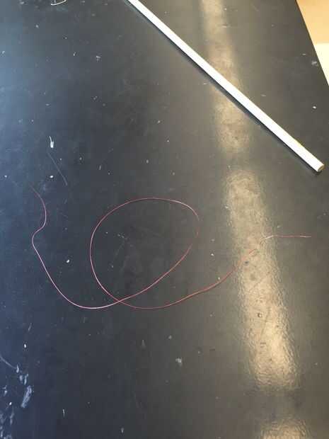 Reunir materiales:Papel de lijaBatería DBanda de goma2 clipsLongitud del brazo un cable rojo (calibre 26)ImanesPaso 1: Enrolle el cable en un círculo, dejando aproximadamente una pulgada de izquierda de alambre a cada lado.El círculo debe ser como si