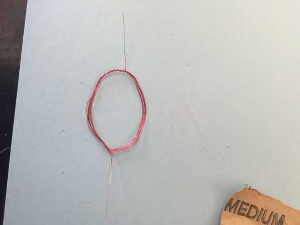 Bueno este paso es muy sencillo que vas a tomar tu envuelta alambre magneto con los plomos de 2-3 pulgadas en ambos lados. Ahora va para frotar la lija en ambos de 2-3 pulgadas lleva pero por un lado desea raspar la mitad del rojo de la capa y el otro cable es afeitarse lo completamente. Usted podrá sentir que la diferencia debe ser de textura más áspera. Asegúrese de que no fregar mucho de él apagado. Debe comenzar a ver un color bronce.