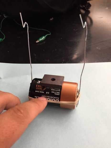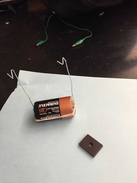 Alambre magnético MotorPaso 1: materialesPila D (1)Imán (1)Alambre magnetoPinzasBandas de goma (1 - 2)Clips de papel (2)Papel de lijaPaso 2: Doblar los clips de papelTomar un lado del papelclip y doble hacia arriba y luegocrear un chapuzón. Esto pare
