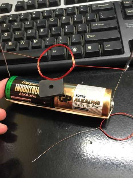 2. use el mismo diseño básico, excepto usar dos baterías. Para ello esta línea hasta las pilas del extremo positivo de una de ellas es hacia atrás con el extremo negativo de la otra.