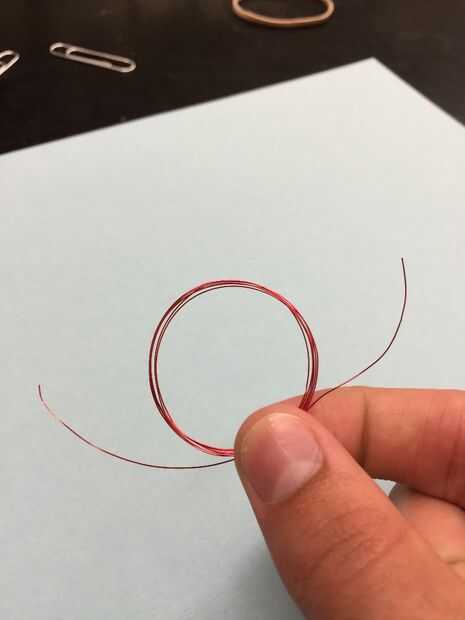 Reunir materiales:Papel de lijaBatería DBanda de goma2 clipsLongitud del brazo un cable rojo (calibre 26)ImanesPaso 1: Enrolle el cable en un círculo, dejando aproximadamente una pulgada de izquierda de alambre a cada lado.El círculo debe ser como si