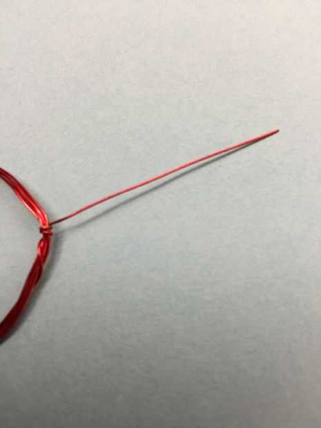 Reunir materiales:Papel de lijaBatería DBanda de goma2 clipsLongitud del brazo un cable rojo (calibre 26)ImanesPaso 1: Enrolle el cable en un círculo, dejando aproximadamente una pulgada de izquierda de alambre a cada lado.El círculo debe ser como si