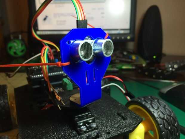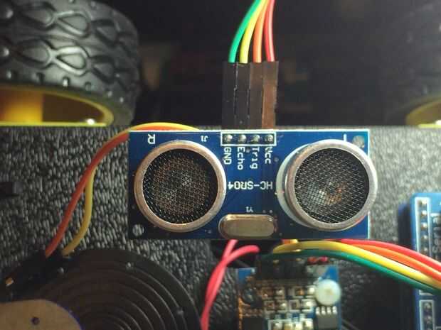 A continuación, conecte el HC-SR04 arriba conectando VCC de 5v pin (VCC) en el protector del sensor. 5v (VCC) pines son los pernos de centro en el encabezado de cada fila en el escudo. Después de hacer esto, conecte el pin GND del sensor al pin GND en la misma fila (el pin junto al pin de vcc). Después de eso, conecte la línea de eco al patillas de señal 8. Ahora conecte la línea de disparo para el los escudos pin 3.