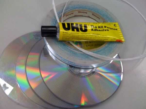 - Establece algunos pesos o cajas o algo para apuntalar los CDs mientras que el pegamento