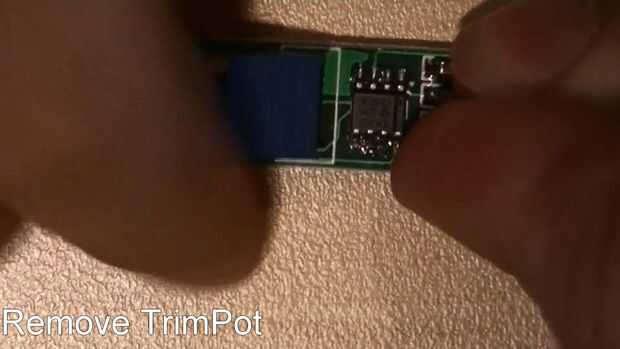 El trimpot saldrá simplemente empujando y tirando en él. Finalmente los pernos dan forma y broche de presión. El camino limpio sería eliminar la soldadura pero mi soldador no se caliente de plomo soldaduras libres de plomo en cualquier cantidad y todavía estoy esperando mi nueva estación de soldadura digital llegar en el post.