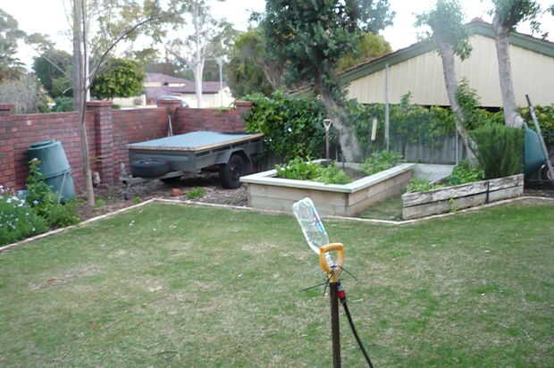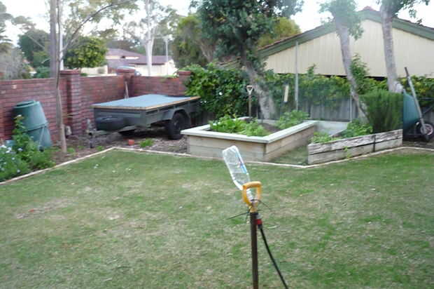 ahora a dejar que el cemento seque, móntelo en un post, caben una botella y golpear el agua