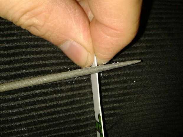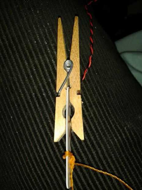para usar como una línea de viaje necesita un pequeño aislante. Yo he usado una tira cortada de una tarjeta plástica de correo no deseado. Cualquier plástico liso duro va a hacer tan sería un agitador de café o palillo de madera lollipop. presentar muescas o perforaciones para que su línea no resbale cuando está atado en. golpear un perno del panel en su apoyo solicitada e instalar línea interruptor y viaje.