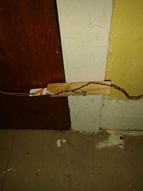 pongo esto juntos después de un intento de adaptación posible. Tengo una alarma magnética en mi puerta pero se apaga cuando la puerta se cierra otra vez y tener la puerta en el lado opuesto de mi casa puede no ser lo suficientemente sustancial como p