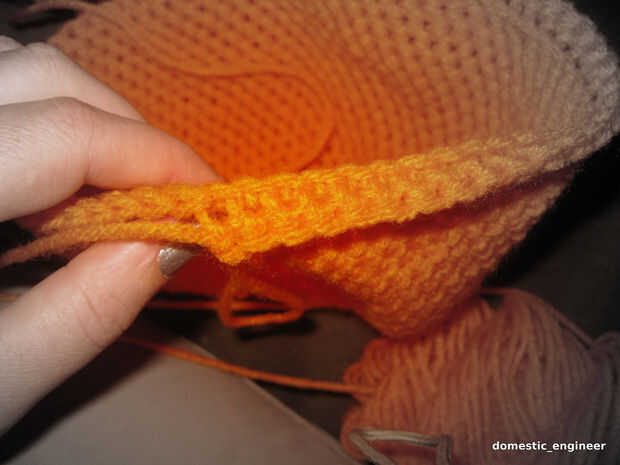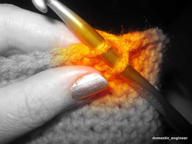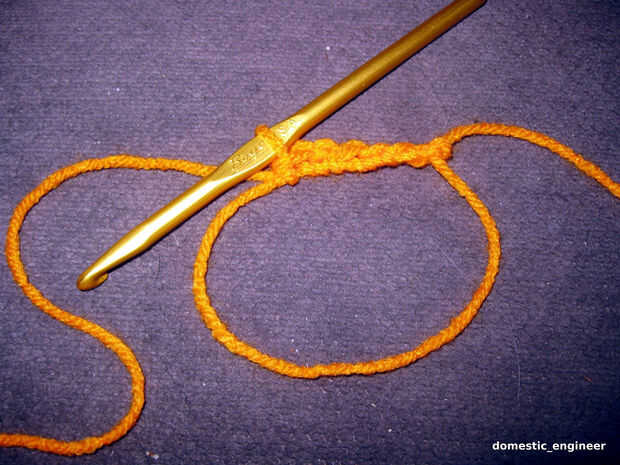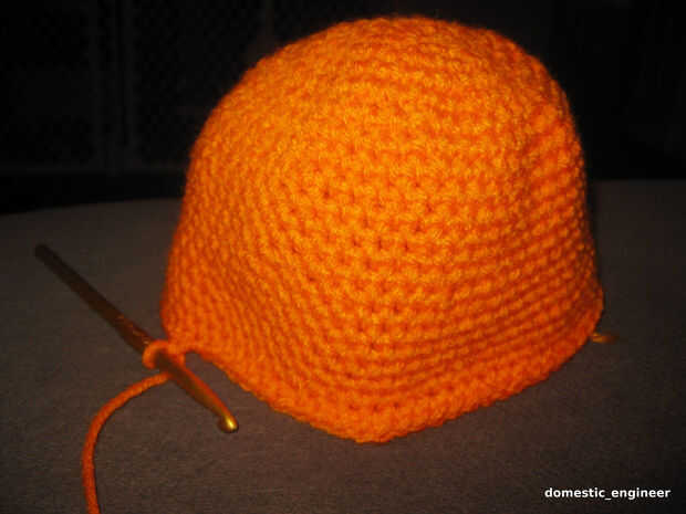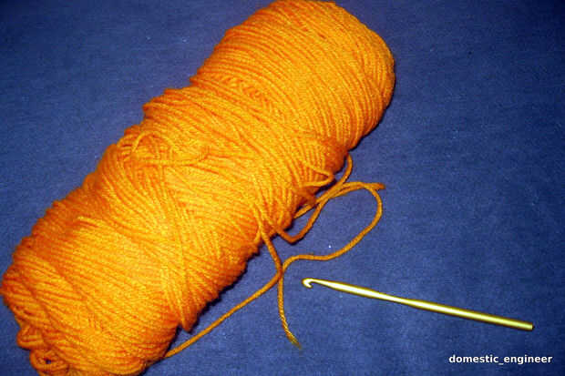 Hilo. (He utilizado un ovillo de hilo rojo corazón naranja. Era suficiente para dos sombreros, además de las sobras.