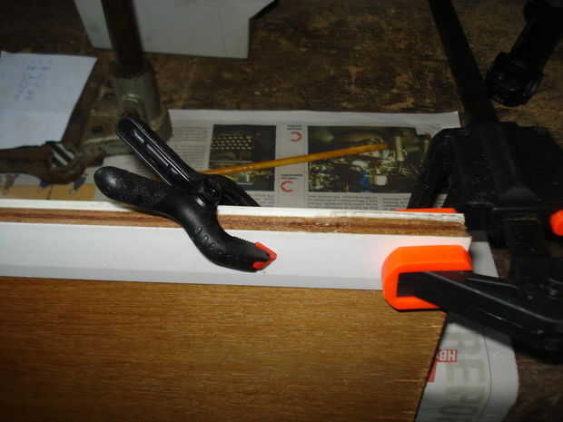 El borde delantero de la placa de teclado doy un toque final con un pegamento de goma (max bisonte Poly) para protegerlo.