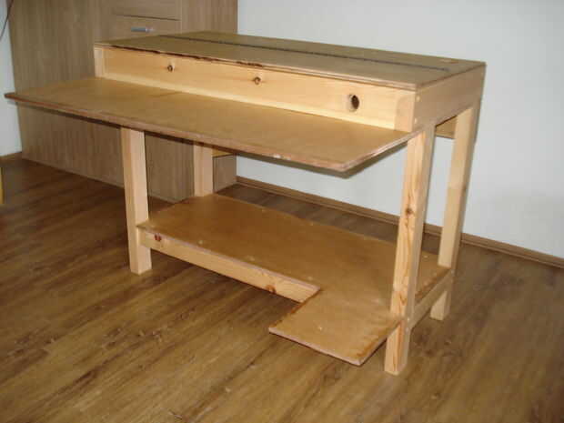 Lo queEste es un hack de mesa IKEA que reemplaza dos patas con un estante en un extremo de la mesa. Varias opciones de personalización son posibles: número de estantes, altura y profundidad de las repisas, estante cuántos niveles, tamaño de mesa, (co