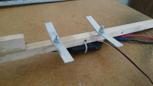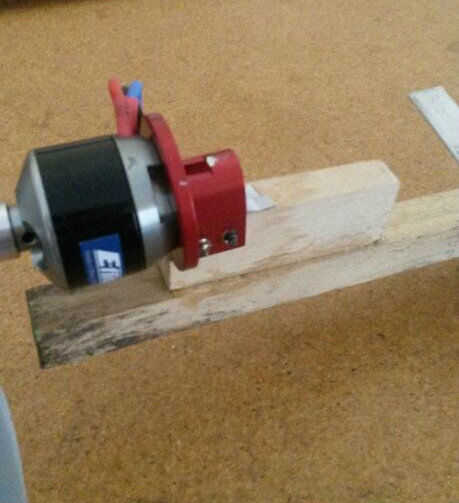 A continuación, simplemente juntos perno de montaje del motor/motor y este tornillo en el taco de madera. Por razones de seguridad, dejó el propulsor en este punto (tuve que conectar la electrónica más adelante para centro de servos).