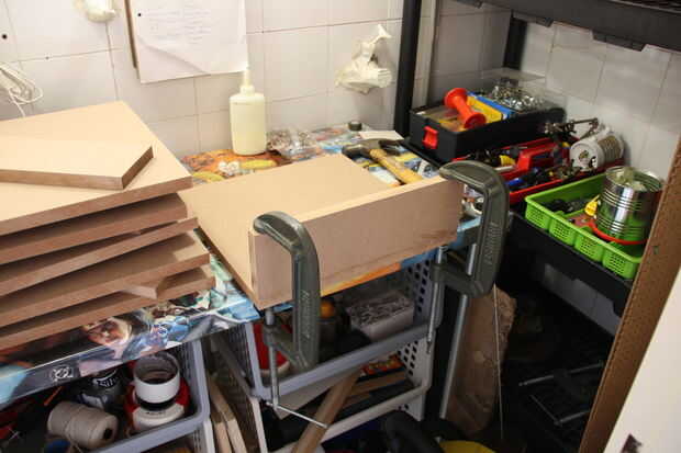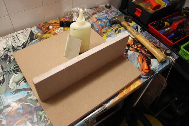1) aplicar el pegamento para madera en el borde más largo de la pieza 35x10cm, utilizando una tarjeta para dejarla bonita y uniforme, cubriendo toda la superficie.