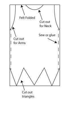 1) hacer un donut grande en forma de recorte con el círculo del tamaño de la abertura y el círculo externo de 3inches más amplia. Una vez que el donut, hacer cortes de zig-zag desde el exterior a un punto cerca de 1 pulgada desde el círculo. No corte hasta el círculo, o a romper el anillo. Cuando se han hecho todos los cortes, coser o pegar este anillo para el resto del traje centrado en el orificio del cuello.