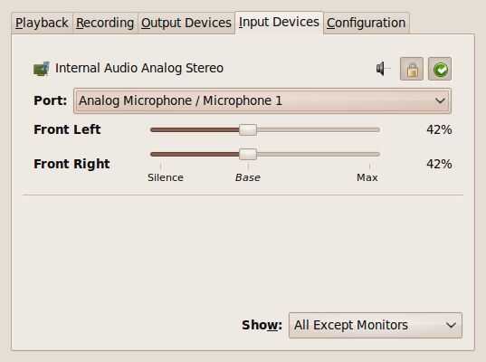 Pavucontrol - control de la tarjeta de sonido (más viejos sistemas pueden necesitar usar las utilidades alsa en su lugar)